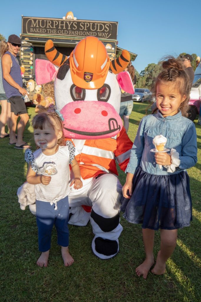 - Skylar and Dior Csallo with Daisy the State Emergency Services cow.