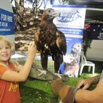 - Sienna Honey with bird Waalitj and Michael Tahana from WA Birds of Prey. Photograph – Richard Polden.