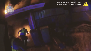 But officers were unable to gain access to the side of the residence – instead forcing entry via the garage.