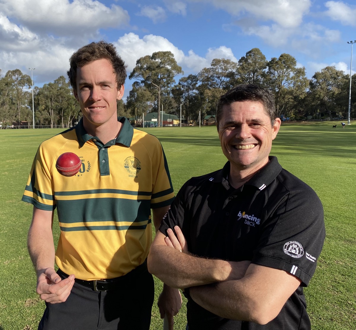 Roleystone Karragullen Cricket Club president Glen Hickinbotham and Bouncing Back program coordinator Paul Peacock.