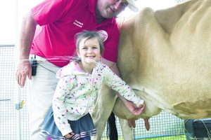 - Selena Isgar tries her hand at milking.