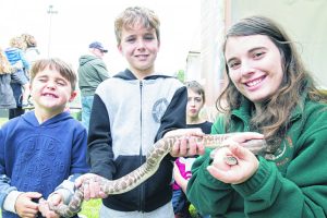 - Kyarn Ash, Jaxon Ash and Madderson Simonetti with Bart the snake.