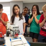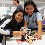 - Canning Vale College students Jonah Lau, Avril Chuang,Vinitha Kallam, Zoe Lau and Matvey Orlov surprised to see their Lego robot in motion. Photograph – Aaron Van Rongen.