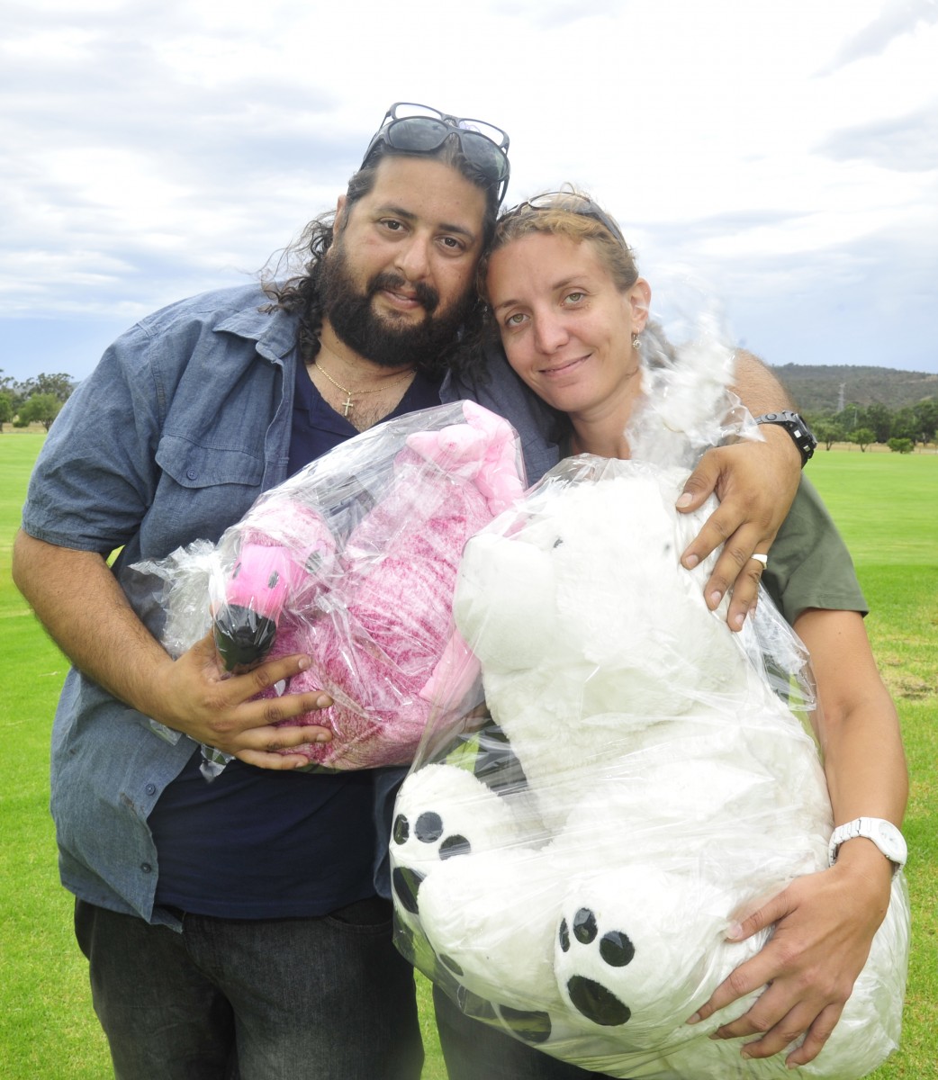 Ryan Anderson and Ella Mae with donations for children and disadvantaged families. Photograph — Richard Polden.