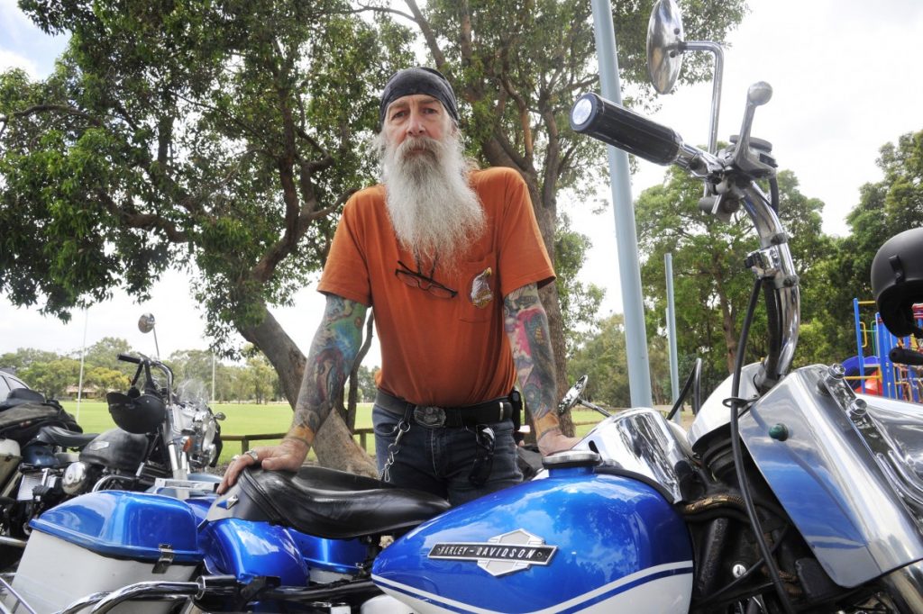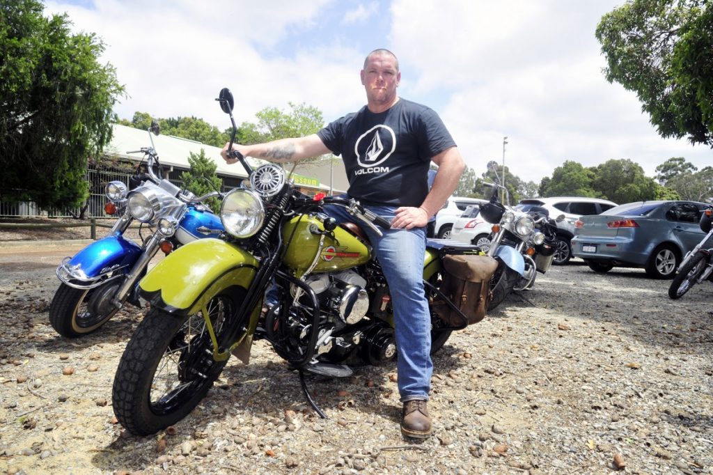 - Johnno Johnson with a 1965 Harley Davidson Panhead.