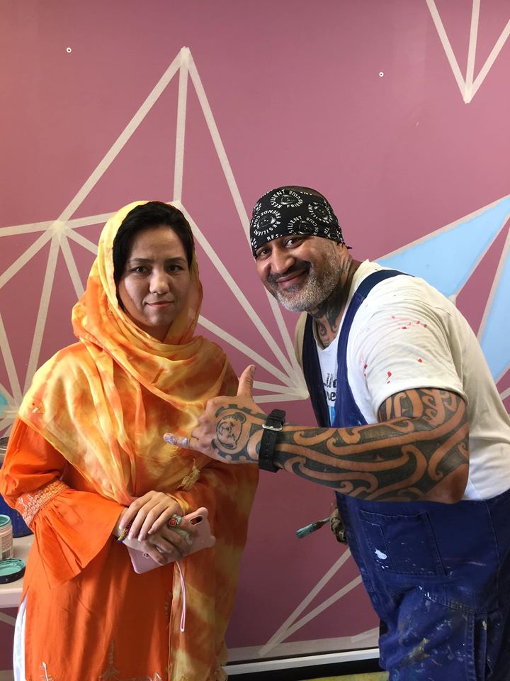 Founder of Art vs Depression Gavin Grace and Centacare student Fatima Ahmadi collaborated in a new art mural symbolising multiculturalism.