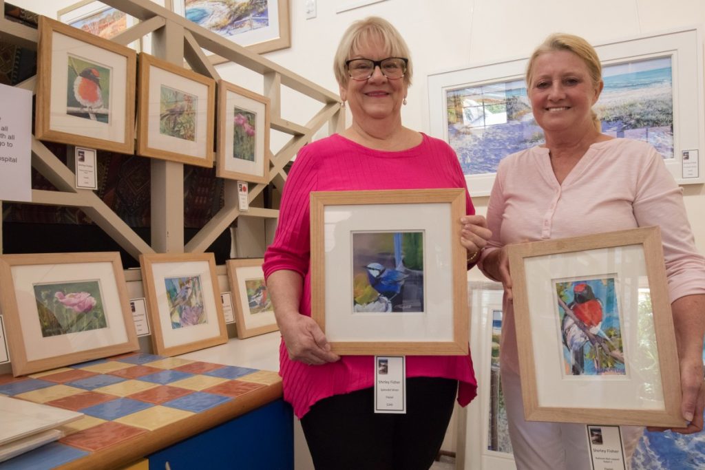 - Fremantle Hospital nurse unit manager Anthea Crawford and Shirley Fisher with some of the donated artworks.