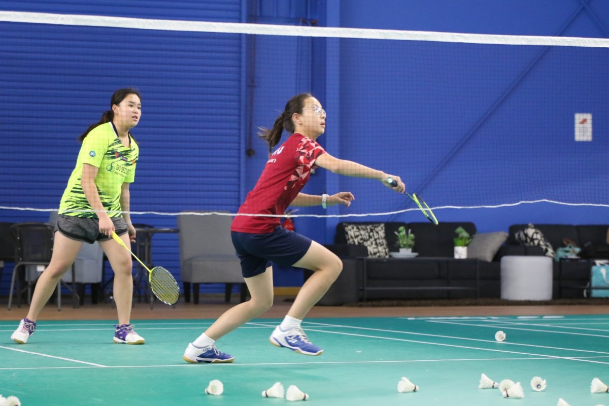 Cindy Lawrence and Seryna Xiao playing girls doubles.
