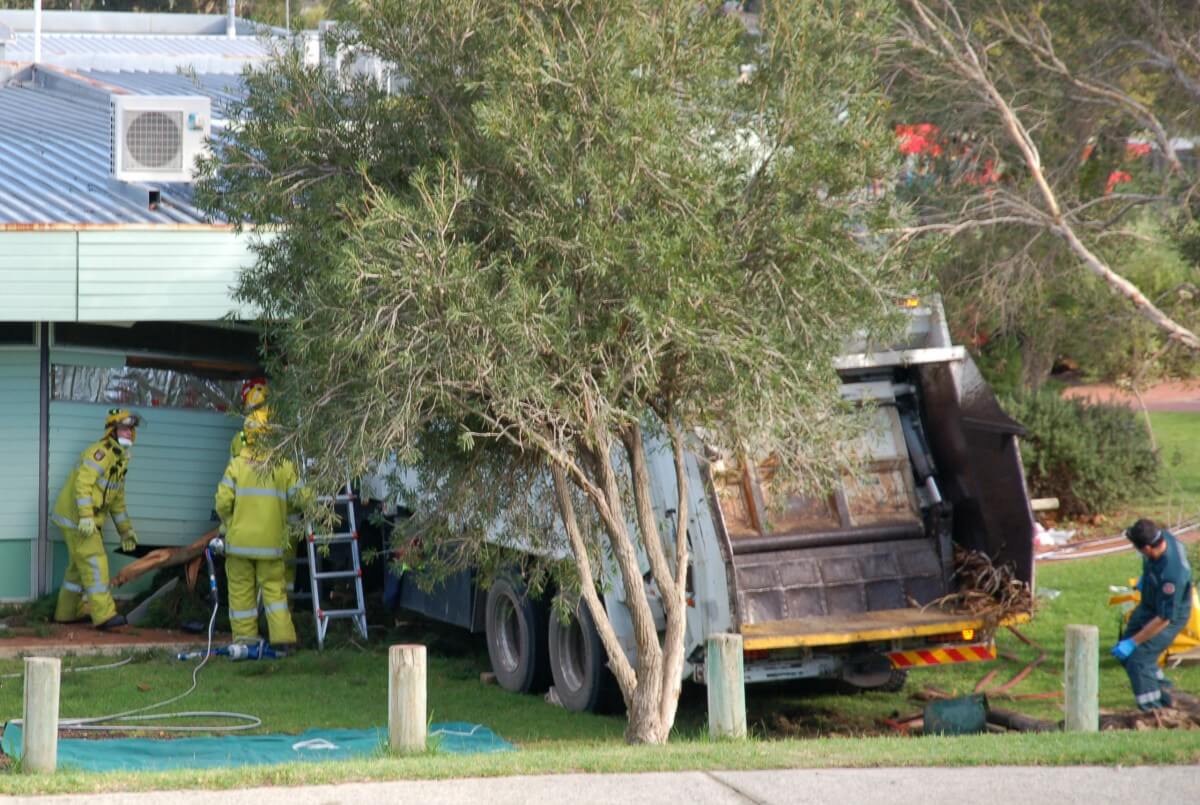 Emergency crews have fought to free a trapped driver after a garbage truck crashed into Clifton Hills Primary School on Thursday morning.