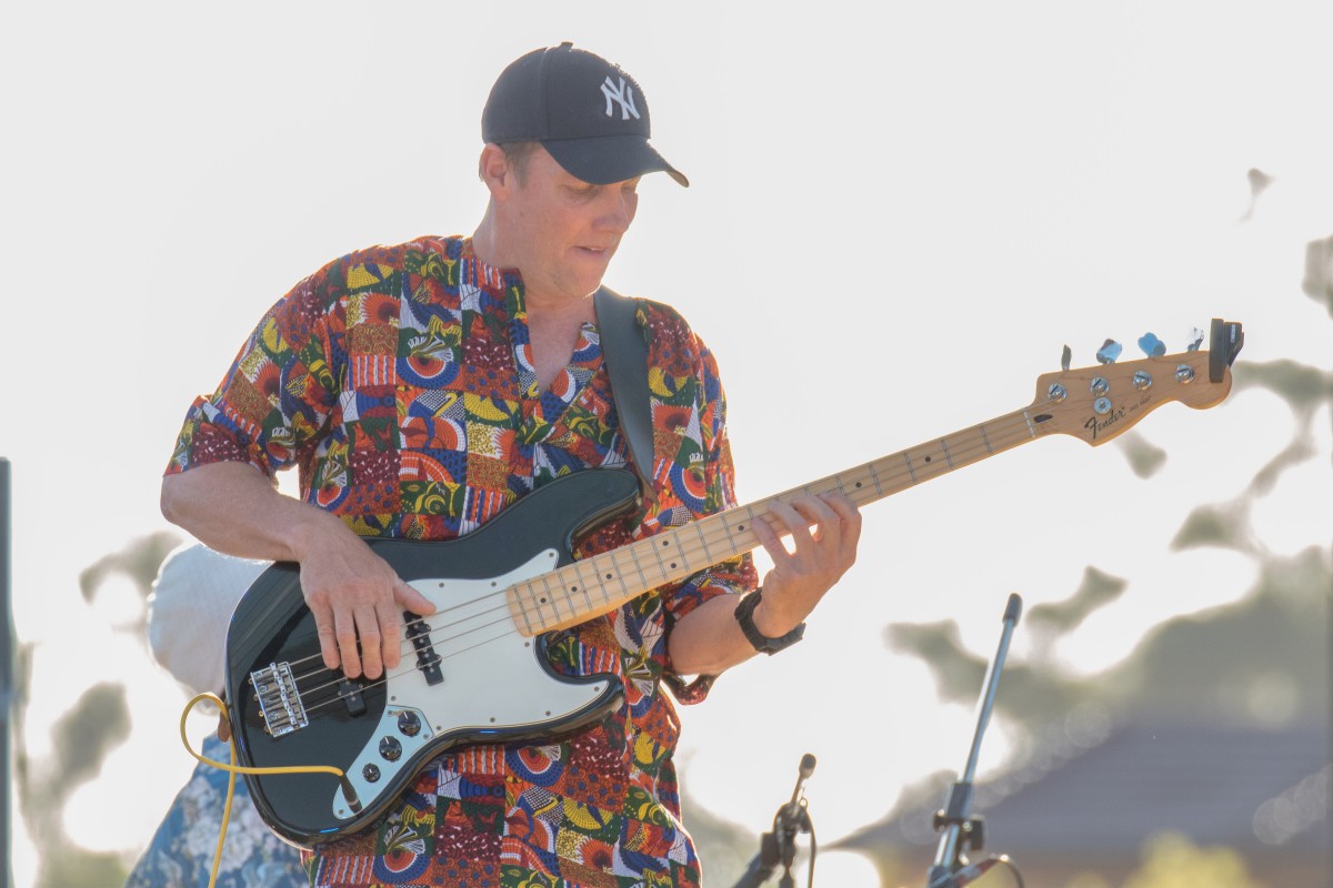 Village Vibes band guitarist taking centre stage for Live at the Amphitheatre audiences. Photograph – Aaron Van Rongen.