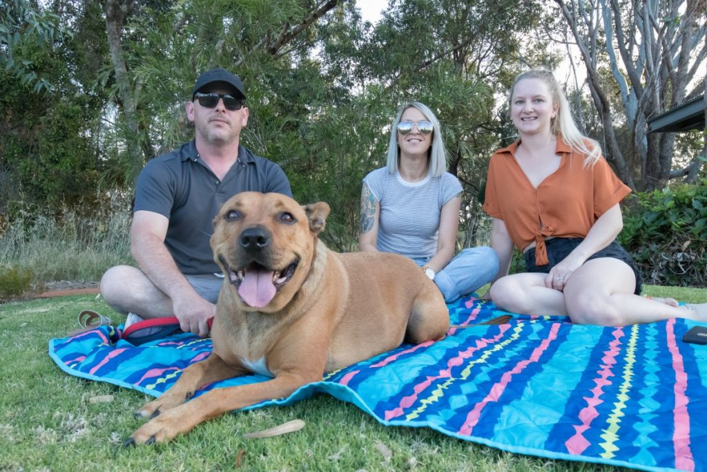 - Craig and Helen Ellis and Teri Bekker with their dog Trevor.
